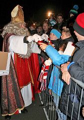 Sankt Nikolaus beschenkt die Kinder